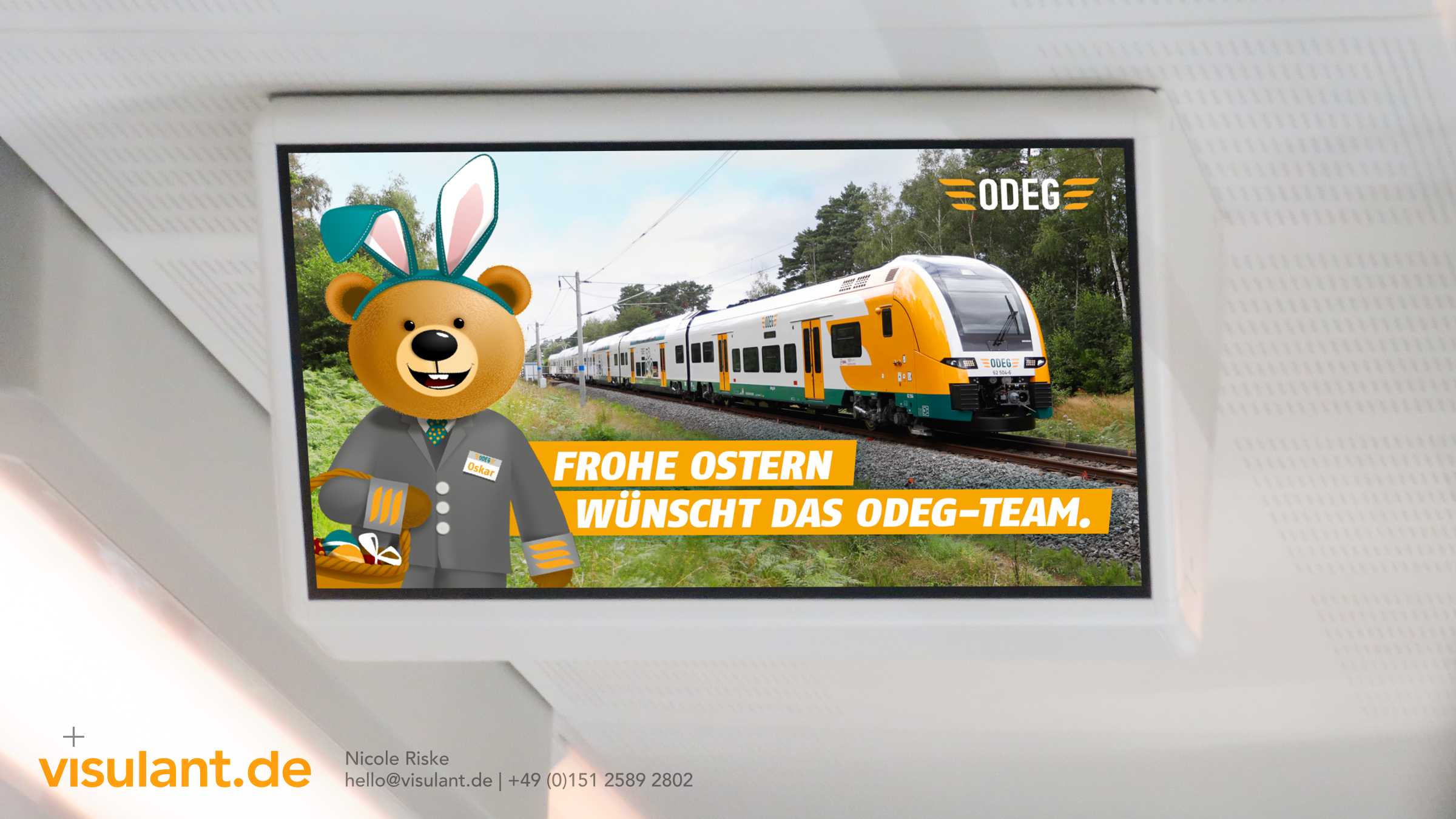Bahn-Innenwerbung auf Display, Ostergruß für ODEG, Illustration und Grafik