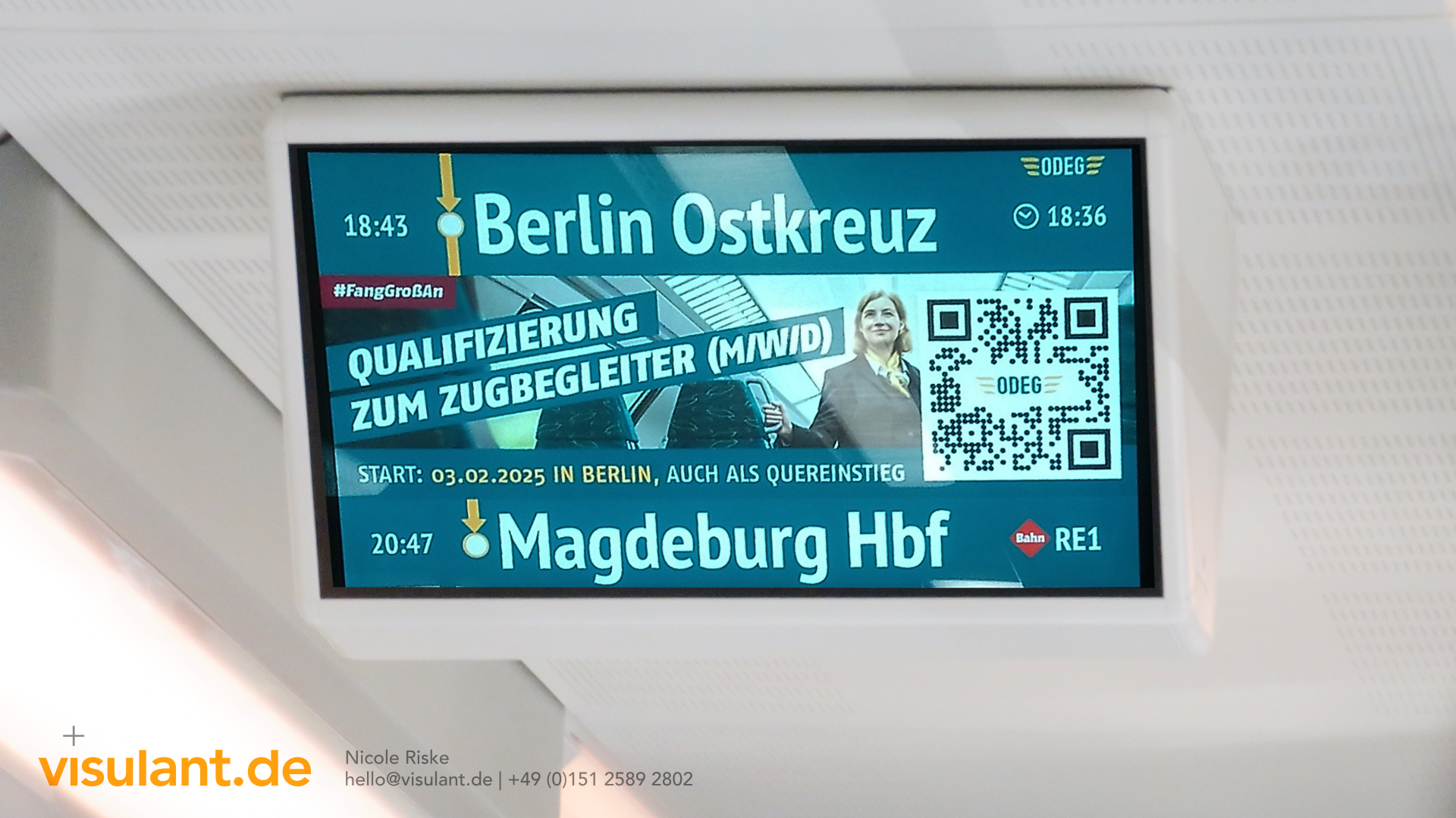 Bahn-Innenwerbung auf Display, Recruiting für ODEG