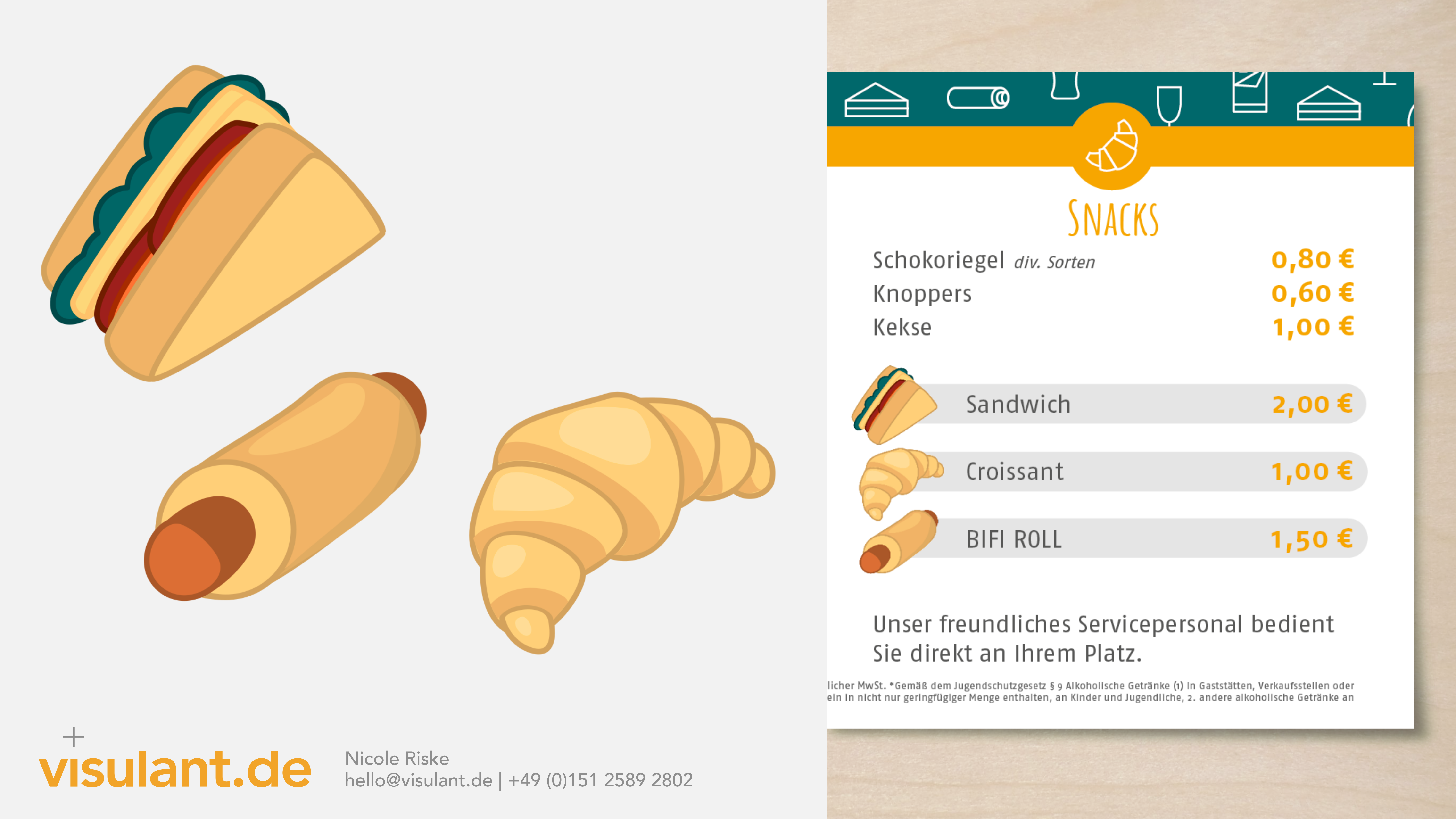 Nicole Riske gestaltete Symbolbilder, die bei einer Snackkarte eingesetzt wurden.